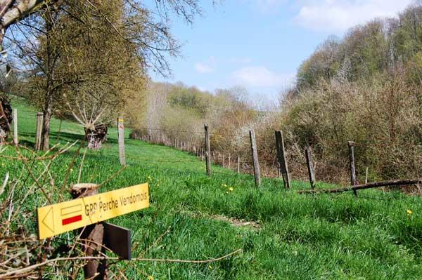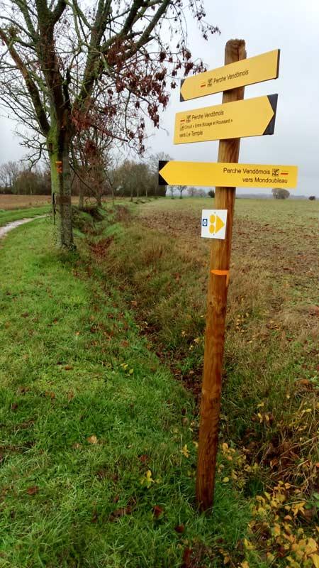 - les barrettes jaune / rouge du GRP du Perche Vendômois ou la barrette jaune d’un circuit PR de la commune.