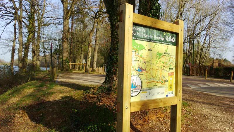 Des pancartes jalonnent chaque circuit. Elles sont liées à chaque type de randonnée : pédestre, VTT ou équestre.